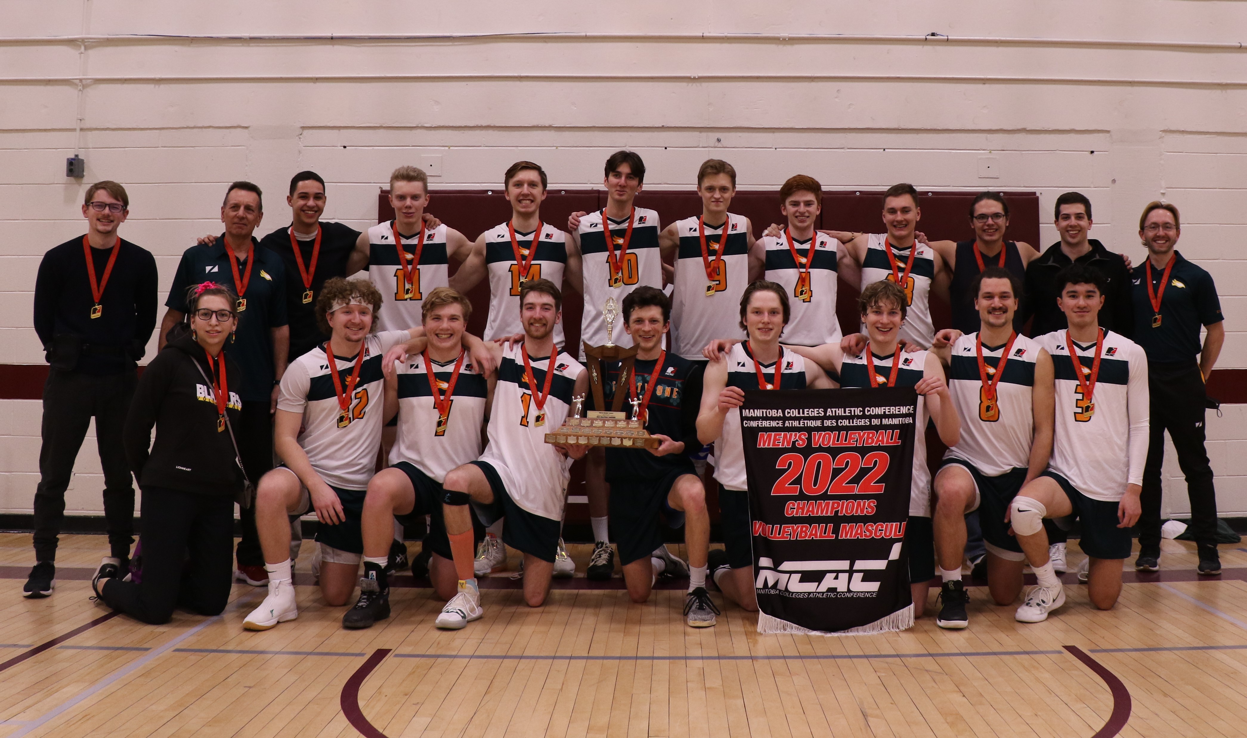 In the final matchup of the weekend, Blazers men's volleyball faced the Providence Pilots; two teams with identical win-loss records in a fitting final rubbermatch with each program taking a championship win over the last two seasons. In front of a loud pro-Pilots crowd, the Blazer men once again found themselves in an early hole in the first set, but as they had done so many times before, steadied themselves and turned the tide to take the first set 25-22. But the Blazers came out completely flat in the second frame, and with absolutely nothing falling their way took a devastating 25-12 loss that could only be described as a throw-away game. After some deep introspection, the Blazers reset their game and came out determined to turn the match back in their favour, doing so with a 25-20 win. With the chess-match now in full swing and plenty of gamesmanship on and off the court, the Blazers headed into the fourth set with only one thing on their mind: an MCAC Championship and a berth at CCAA Nationals. Outstanding play from converted middle Josh Werbiski playing in his hometown Brandon had his Blazers squad on the cusp of championship glory when rookie "Super Dave" Nelson took to the service line and delivered another supreme serve which set up a dig of his own followed by a game-winning kill from Blazers all-star Matt Page, who once again put the nail in the coffin for the Pilots. CMU's Timothy Juvonen was named Championship MVP for his stellar leadership and play throughout the weekend, and will now be tasked with leading his CMU squad at the CCAA National Championships in Quebec City later this month.